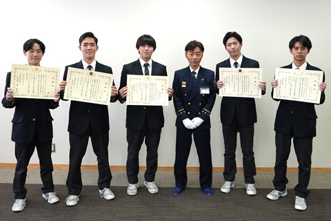 TOPICS 越谷市消防局より感謝状 2025.12.16 10月23日に発生した救助事案に対して、本校3年生5名が救助を行ったとして、12月16日に本校にて越谷市消防局から感謝状が贈られました。 贈呈式では、生徒たちの勇気ある行動に対する感謝の言葉とともに、消防長から1人ひとり感謝状が授与されました。 一覧へ戻る