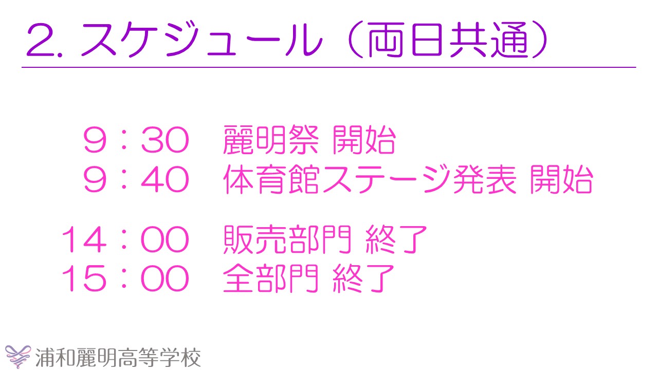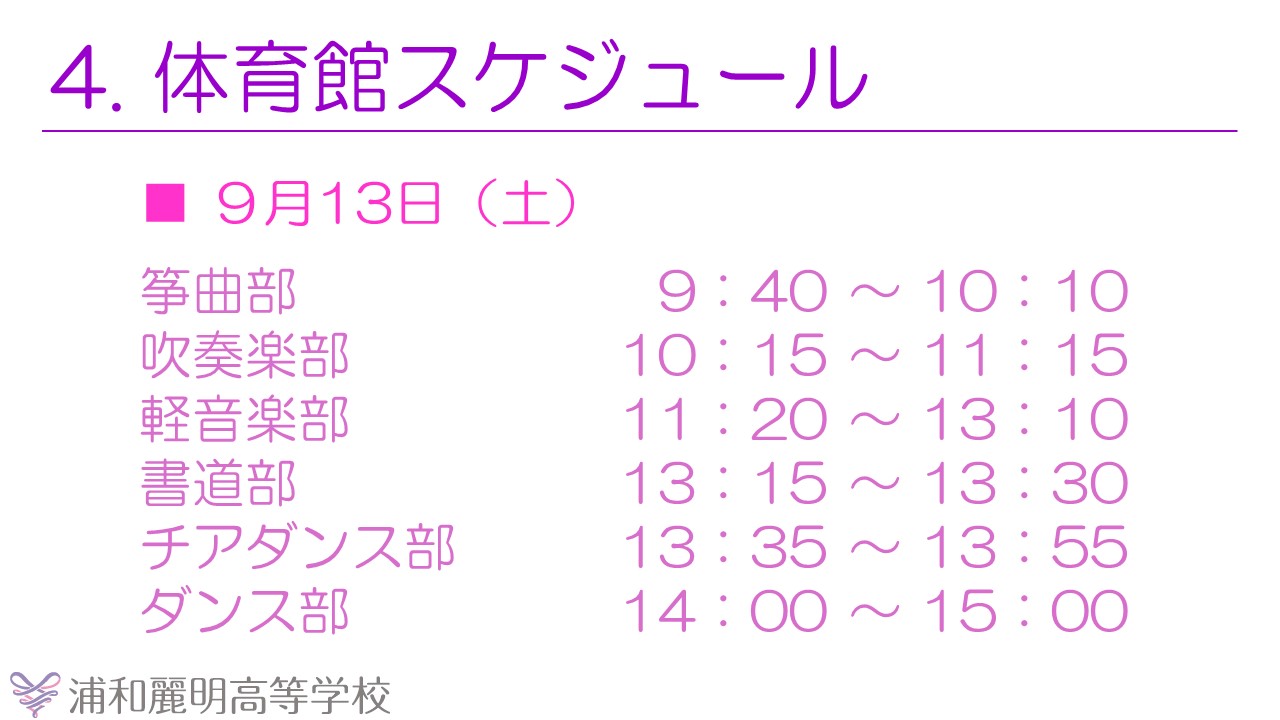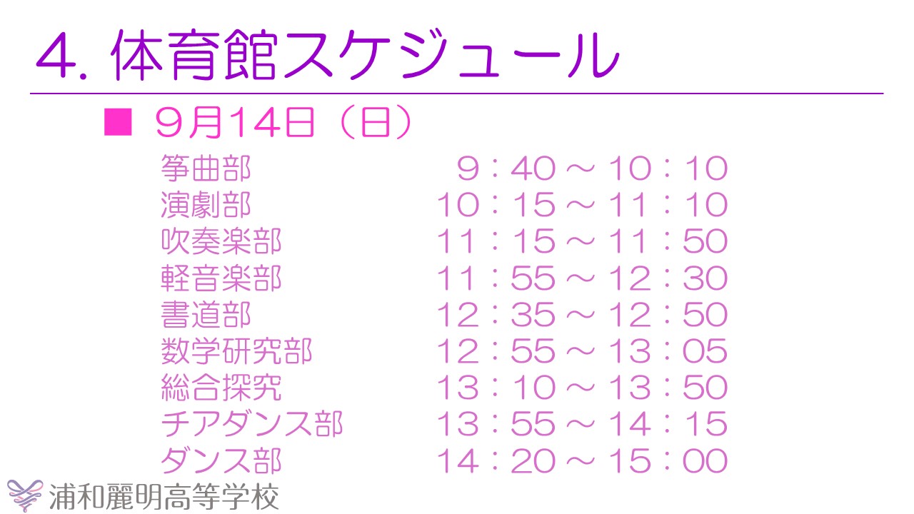 ※体育館スケジュールについては、進行状況により時間が前後する場合がございます。あらかじめご了承ください。