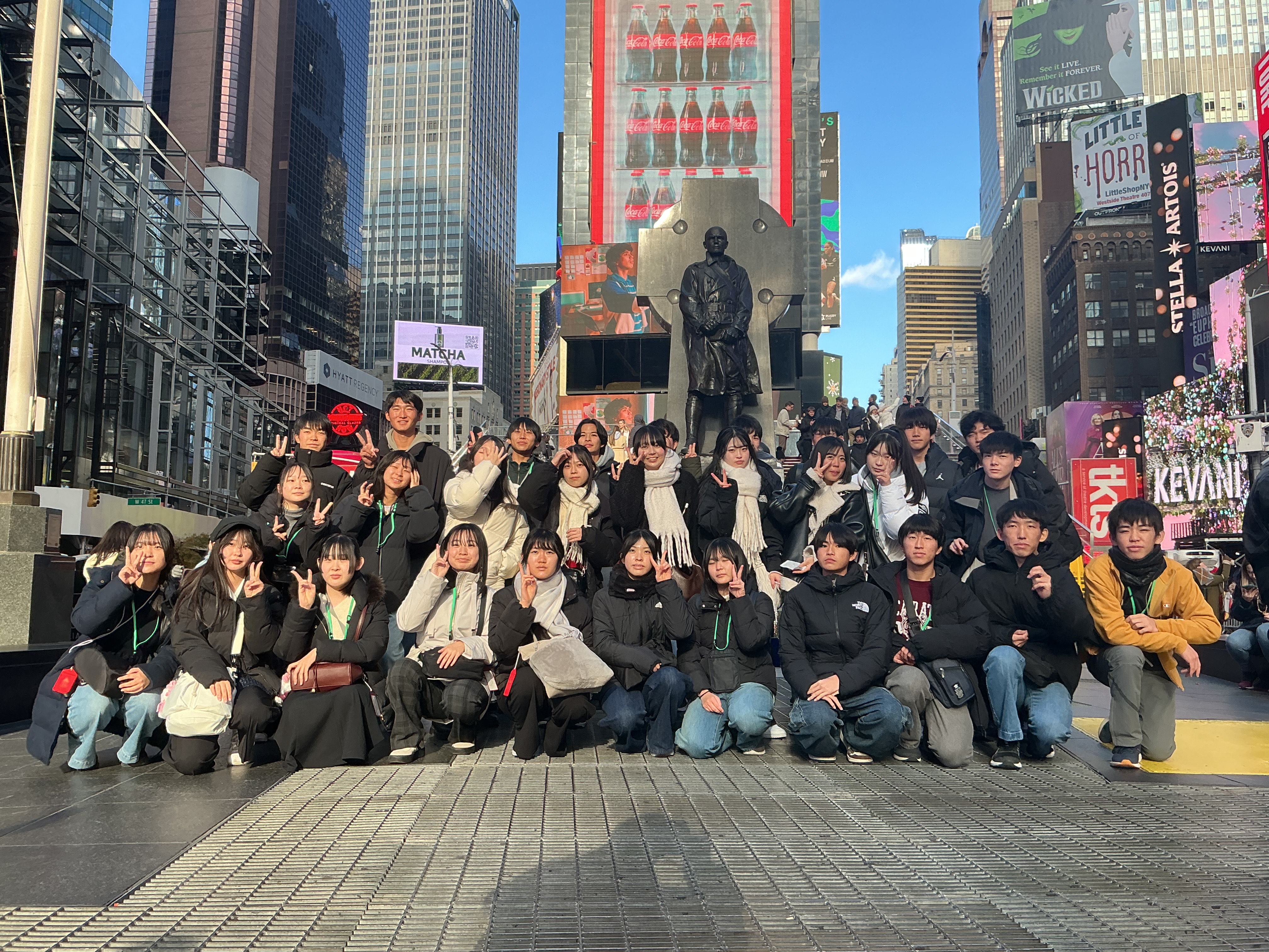 午後は、楽しみにしていた「タイムズスクエア」の自由散策を行いました。前日にロックフェラーセンターのクリスマスツリーの点灯式が行われたこともあり、世界中の人々が集まるなかで散策となり刺激を受けました。